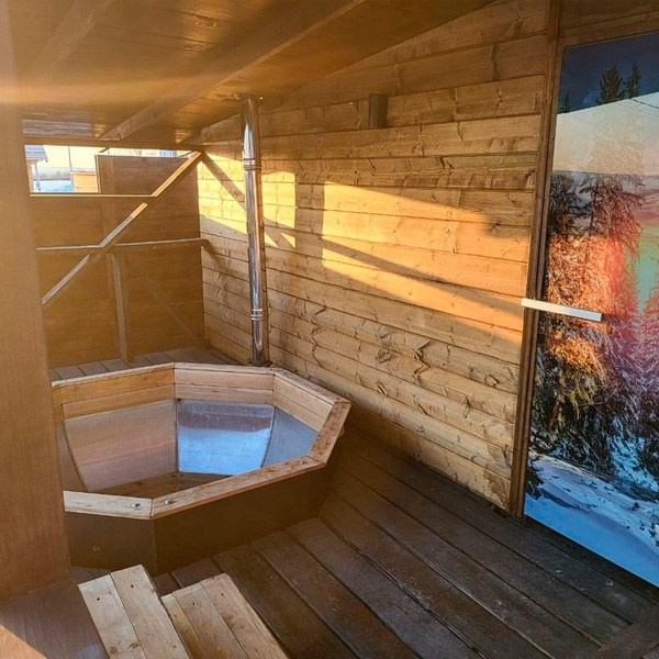 Дом с баней и сибирским чаном расположен в тихом месте и оснащён двумя кондиционерами, уютной мебелью, дровяной печью, верандой с видом и зоной для отдыха у костра; рядом — горнолыжный курорт «Сорочаны» с летним пляжем и множество активностей: от картинга и рыбалки до дельтапланеризма и соколиной охоты.