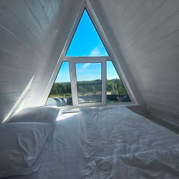 Главная / Каталог домов / Двухуровневый семейный дом А-фрейм с 2 спальными комнатами и верандой