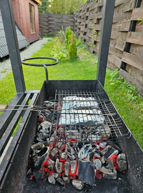У мангала: решетки, шампуры, инструменты, розжиг, мешок угля 3кг в качестве комплимента.