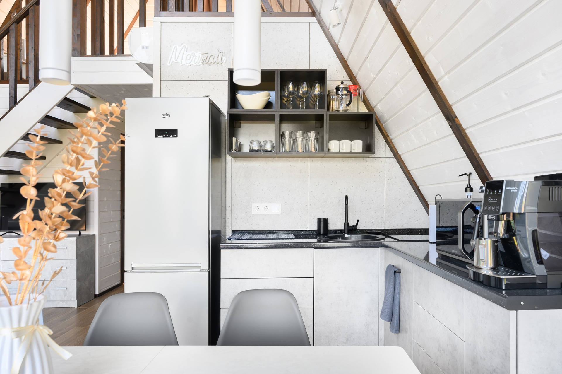 В доме сауна с банными принадлежностями (гели, шампуни, зубные наборы), даём веник для бани. также есть: бытовая техника + Смарт ТВ и Алиса, хорошая посуда на 6 человек, большая кровать в комнате на первом этаже, большая кровать на мансарде, большой диван в гостиной.