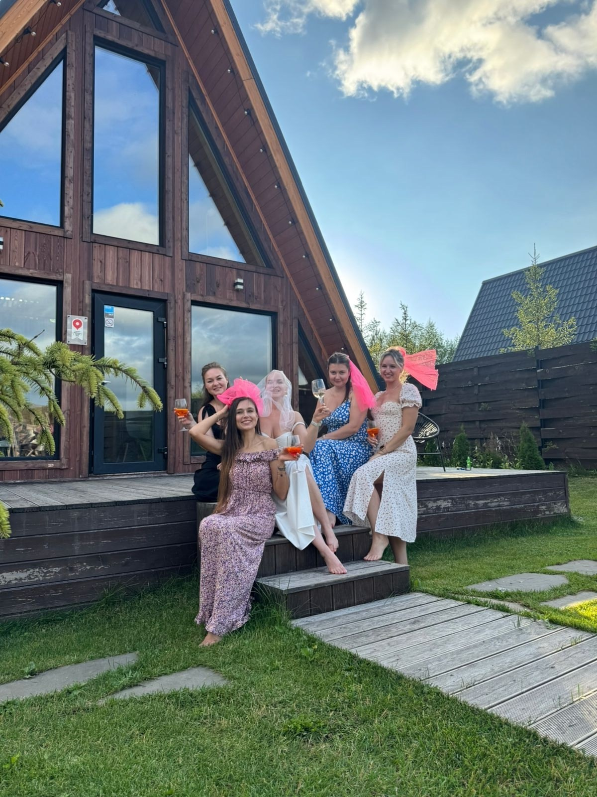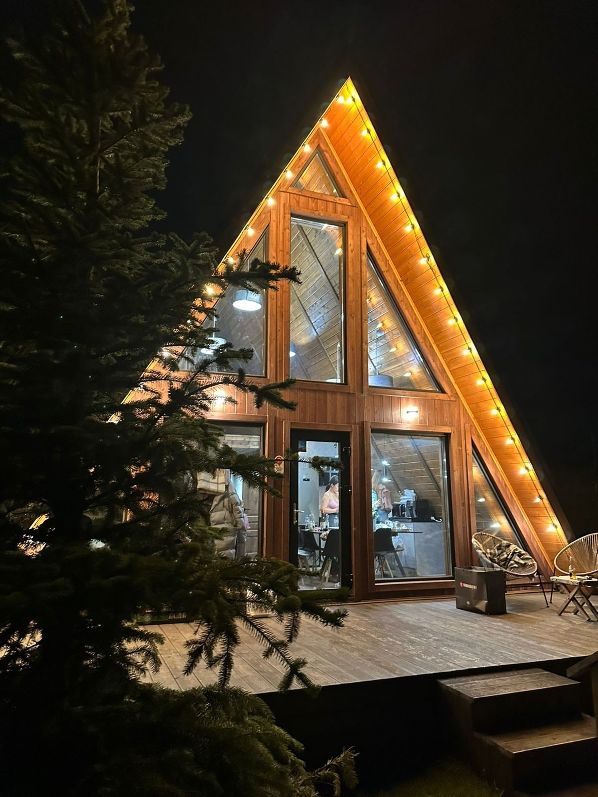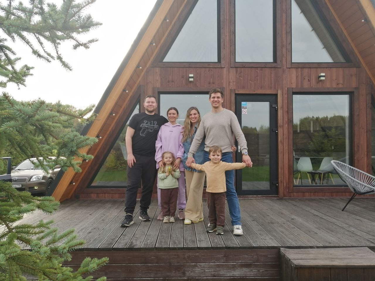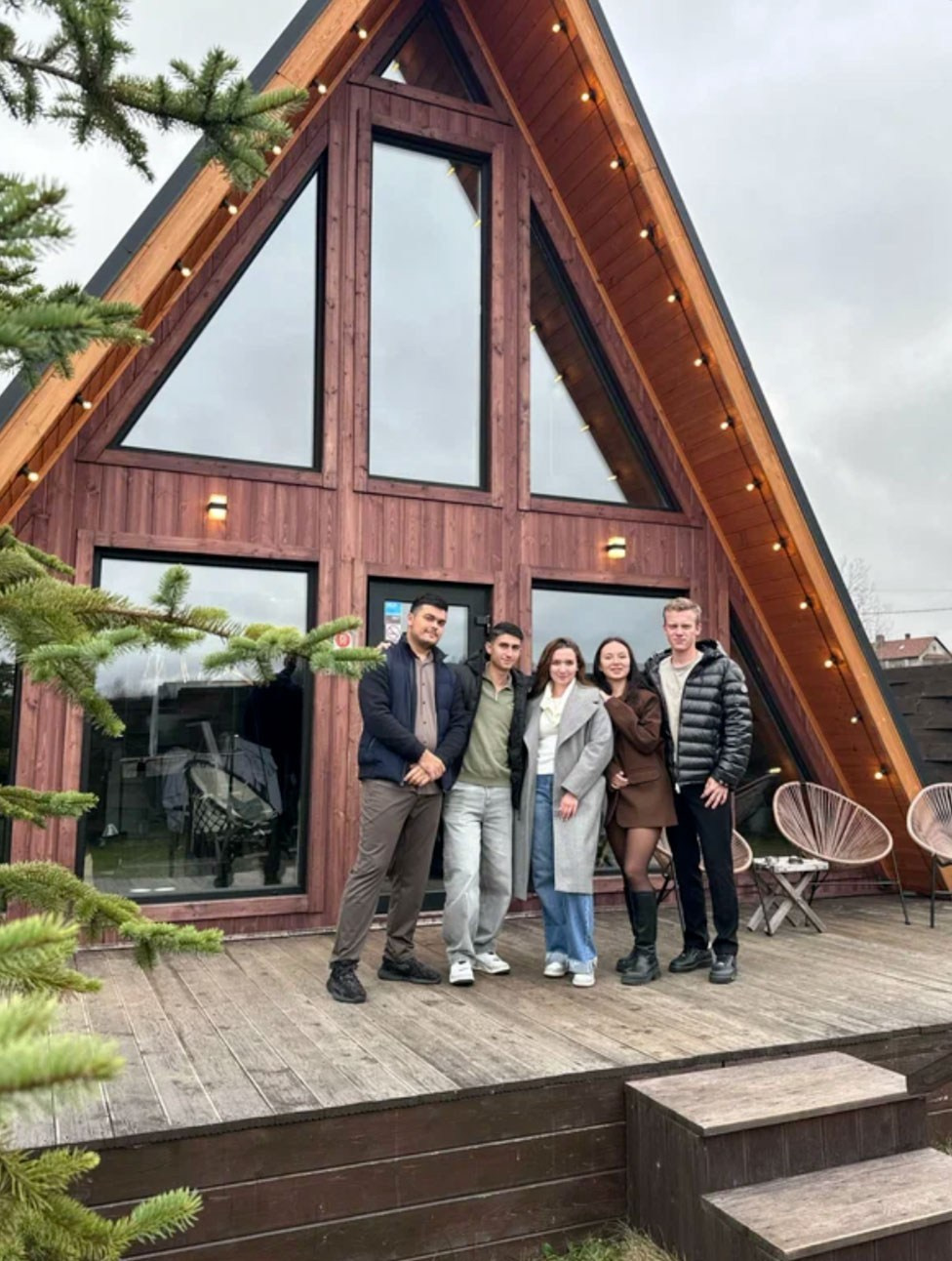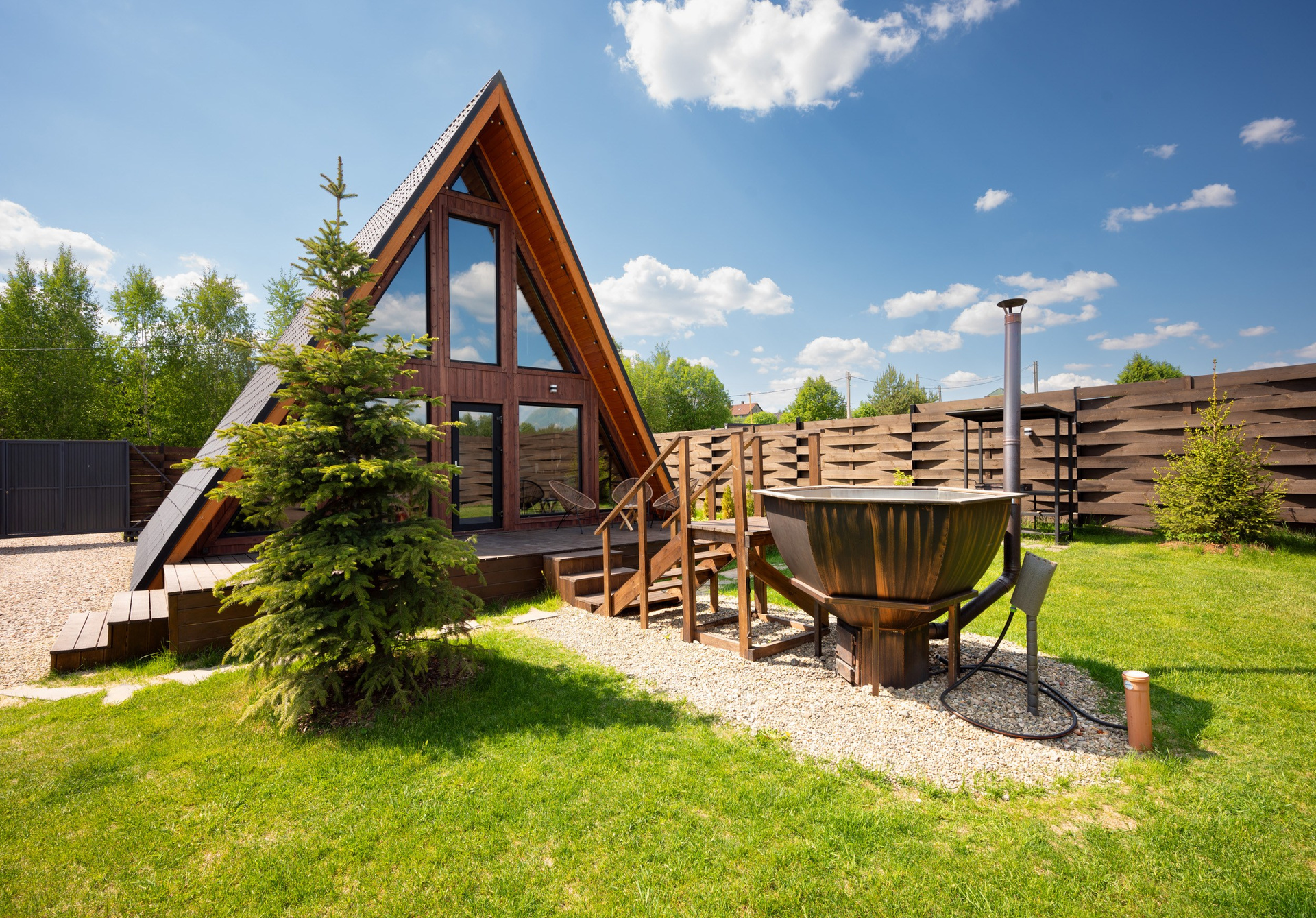 Треугольный коттедж на сутки с чаном, баней мангалом — на 6 человек
