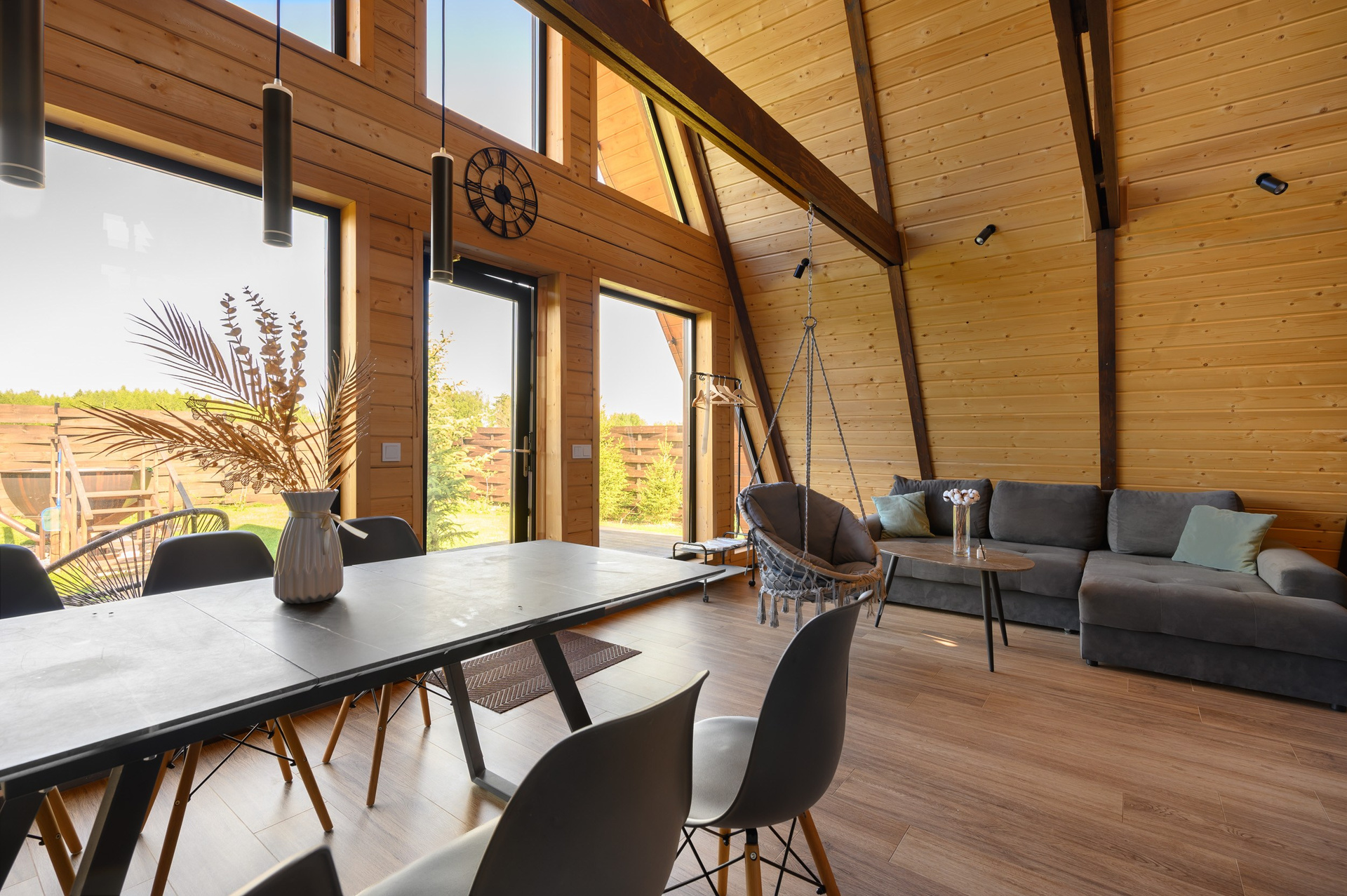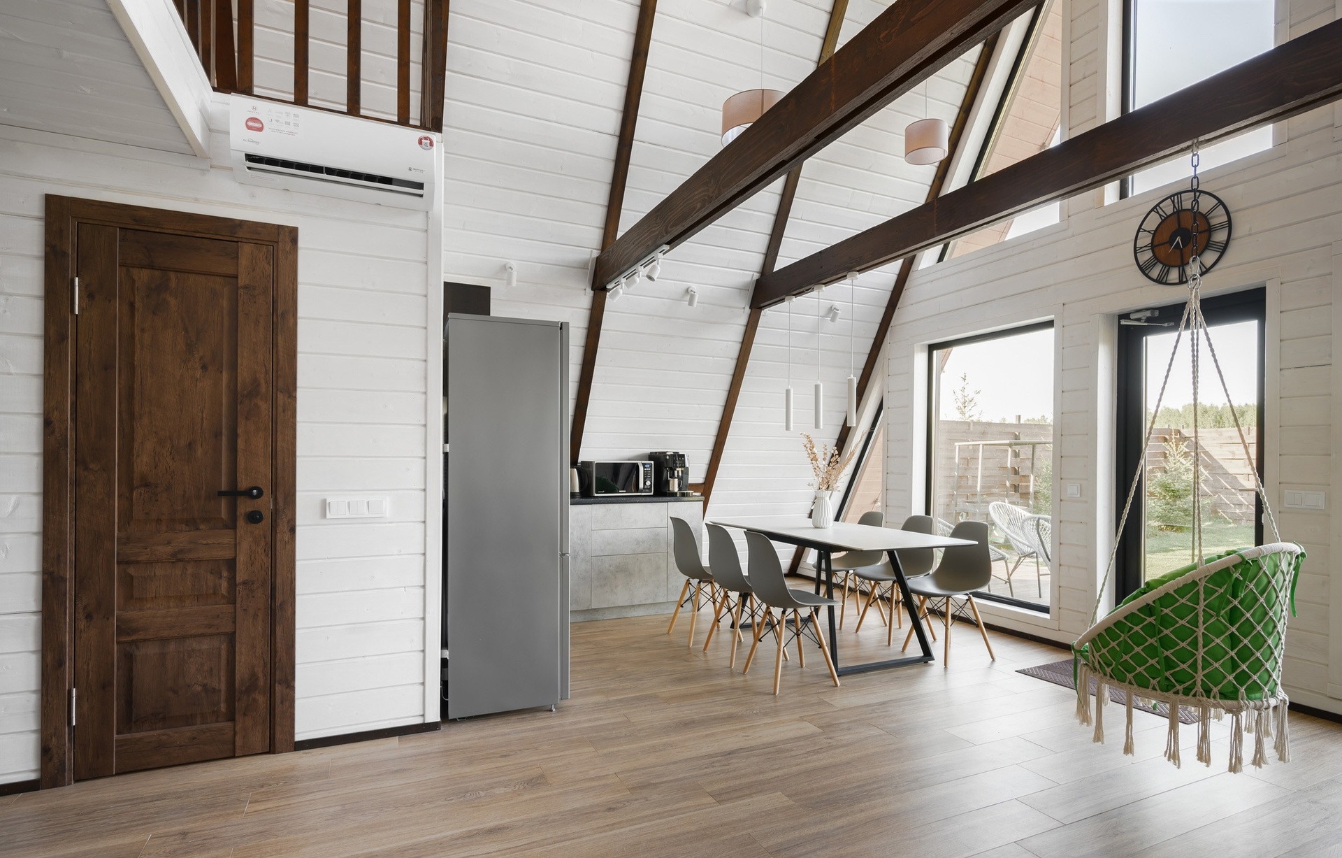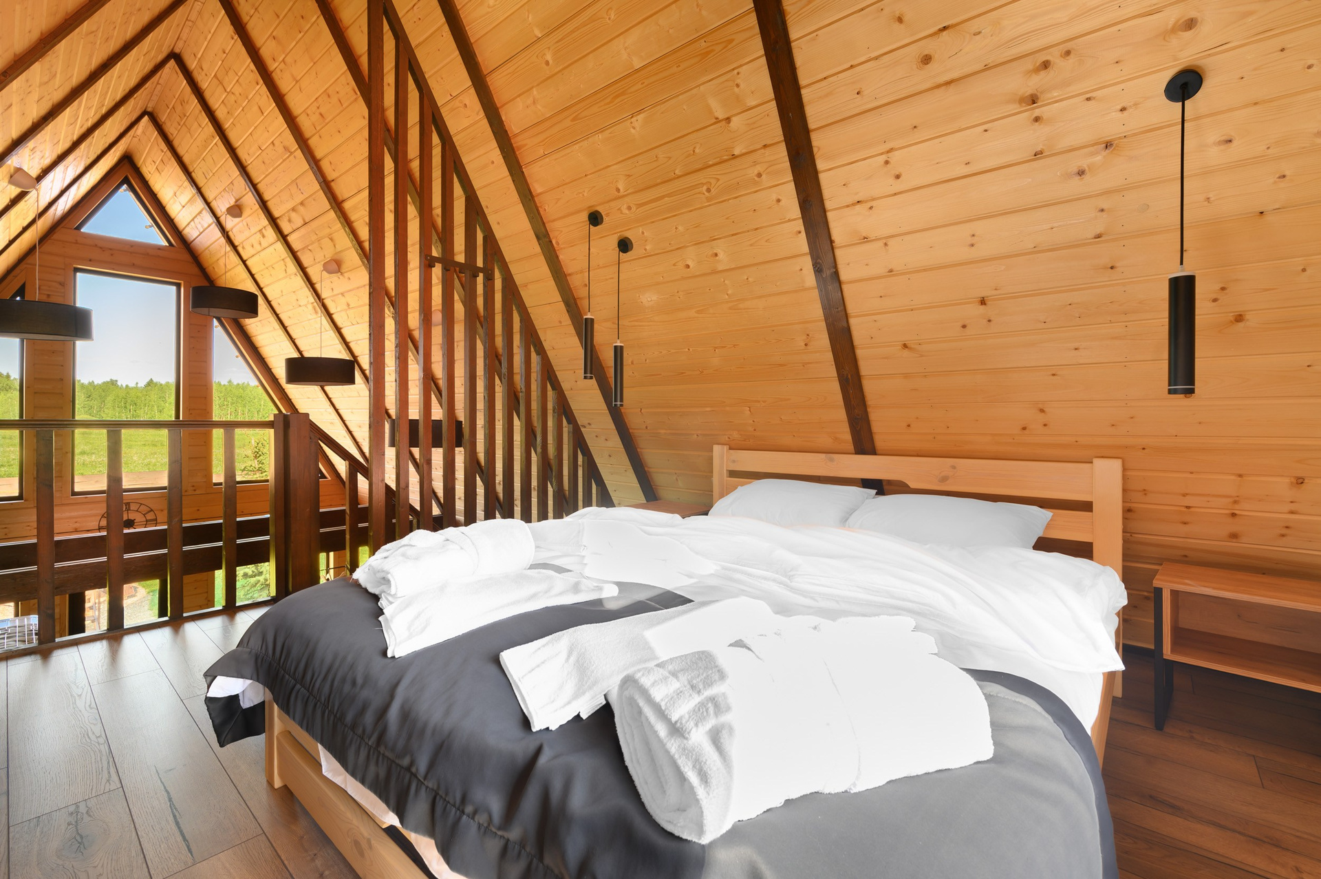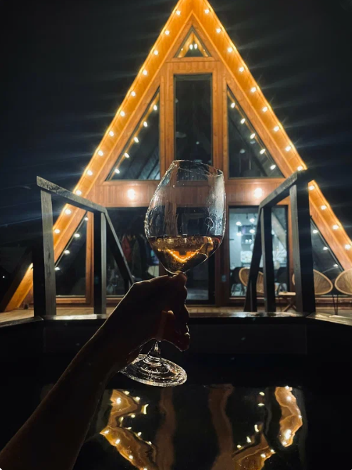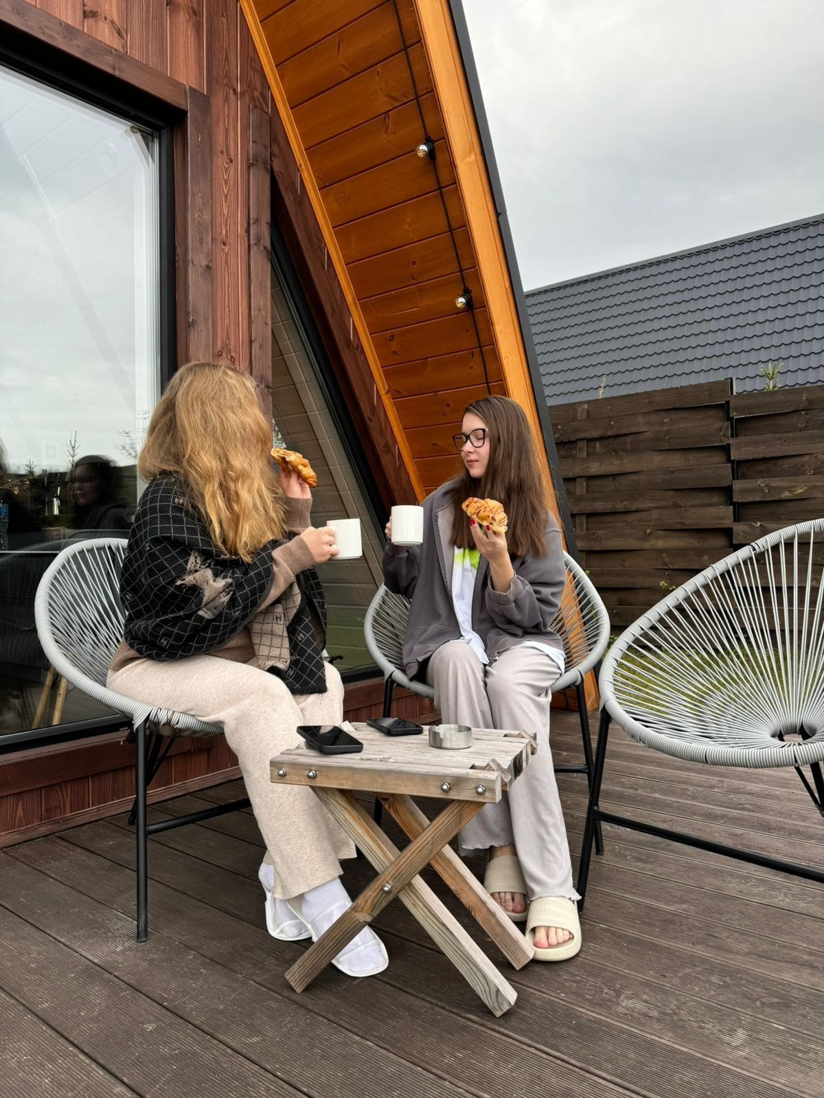 Треугольный коттедж на сутки с чаном, баней мангалом — на 6 человек